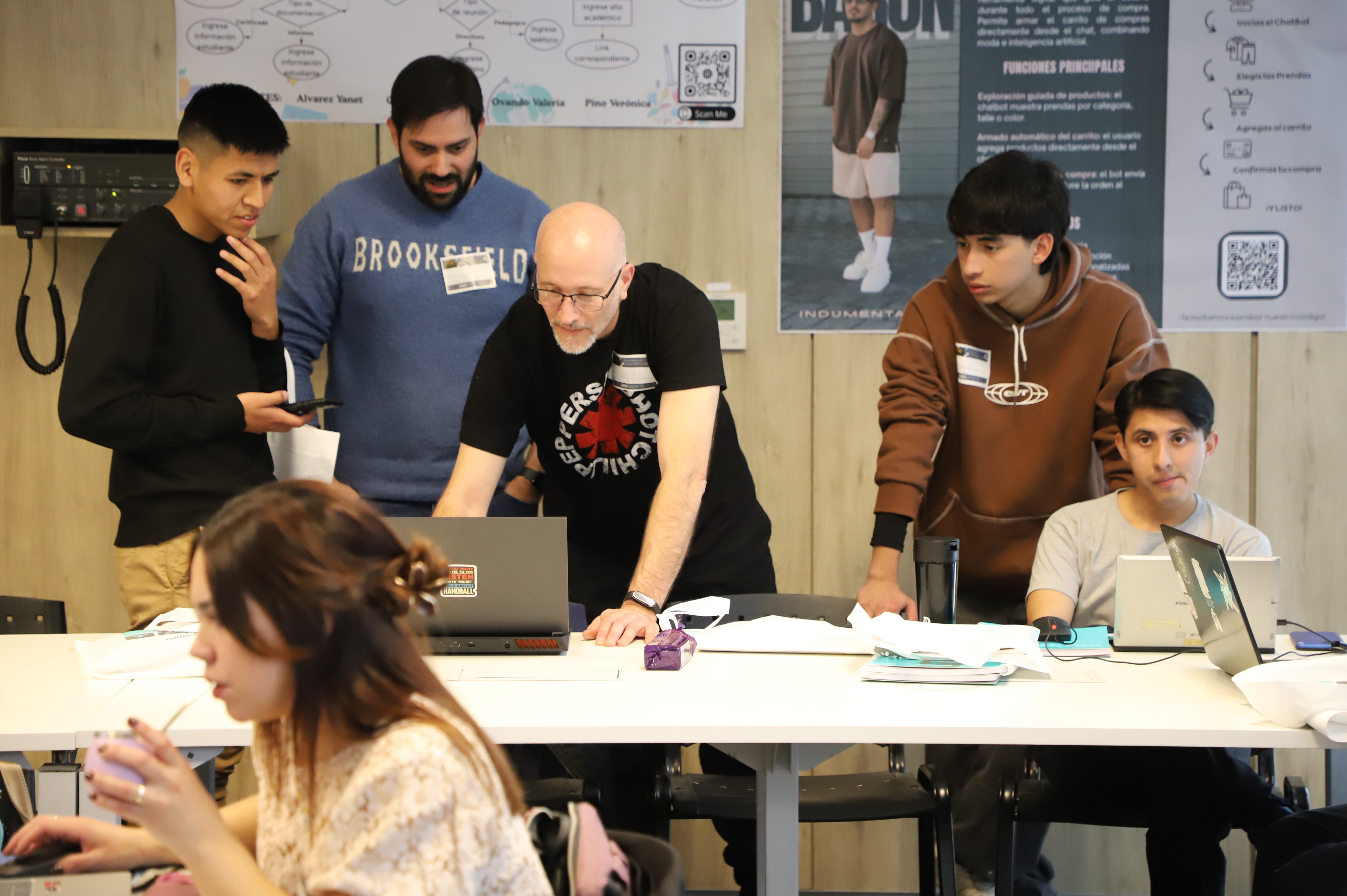El encuentro se desarrolló en un formato que evocó una “Feria de Bots”, donde los estudiantes mostraron los resultados de sus proyectos vinculados a la programación, la automatización y la ciencia de datos. Cada grupo presentó sus desarrollos frente a las autoridades y al público, compartiendo las soluciones digitales.