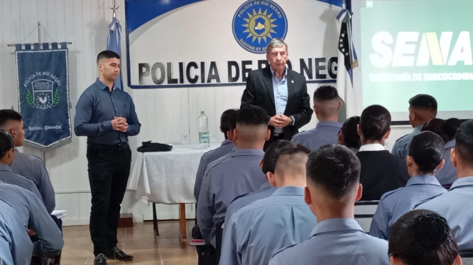 Continuando con el ciclo de capacitaciones para la Policía de Río Negro, la Escuela de Suboficiales y Agentes de Sierra Grande fue sede de la primera charla informativa conjunta entre la Secretaría de Narcocriminalidad (SENAC) y la Agencia para la Prevención y Abordaje Integral de los Consumos Problemáticos (APASA).